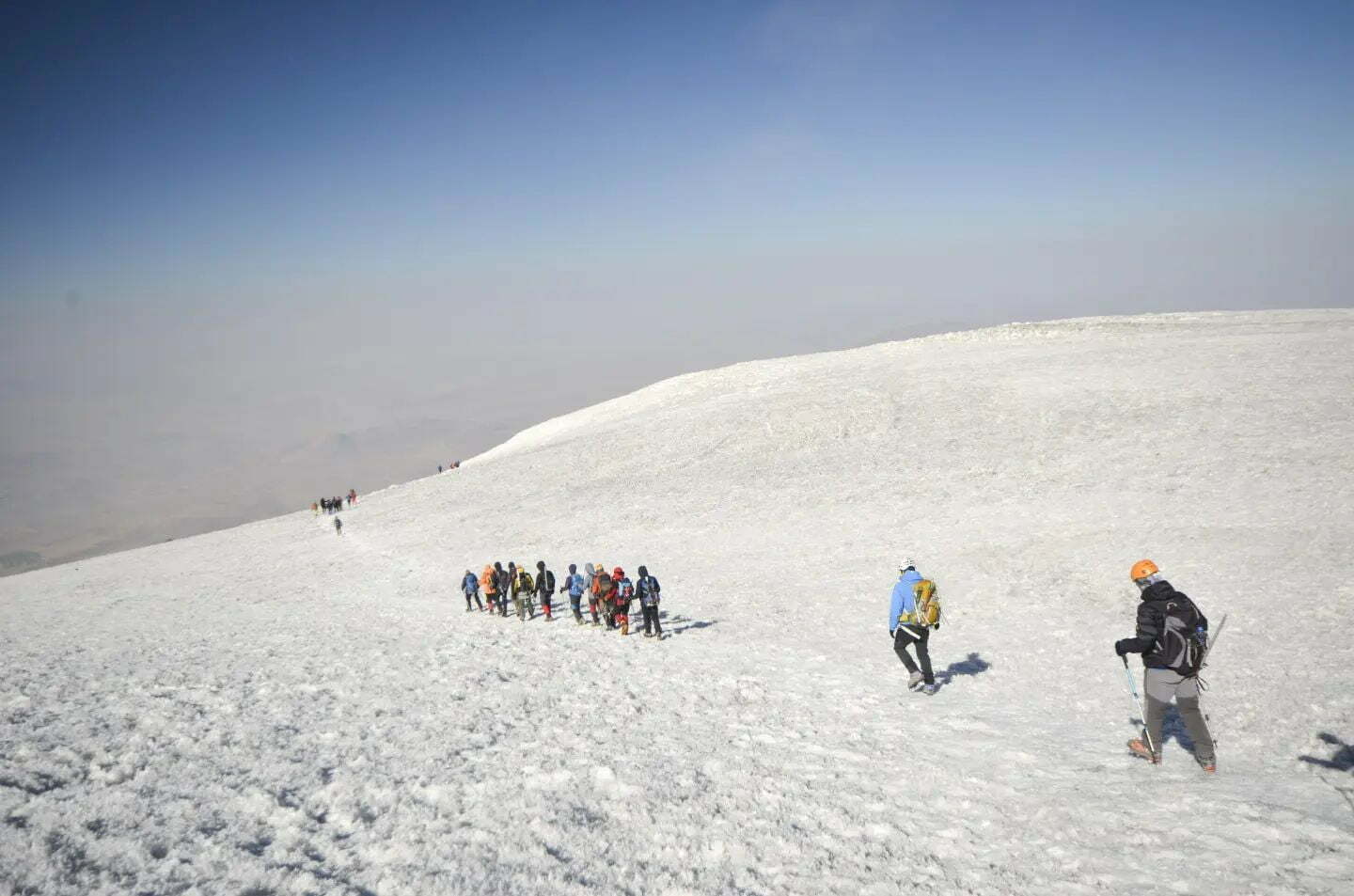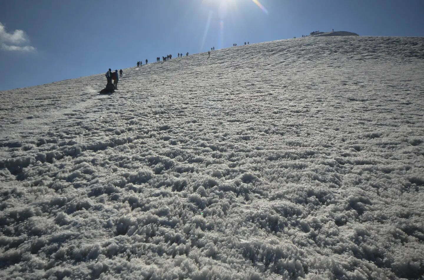 02:00 Zirve yürüyüşüne hareket, zirveye varış 7:00 (5:00). Zirvede mola ve tören. 08:00. Zirve karla kaplıydı. Hava sıcaklığı eksilerde idi. 4200 kampına hareket, 2. Kampa varış 10:00 (2.00) 14:00 3200 metre kamp alanına hareket, kamp alanına varış 16:00 (2.00)